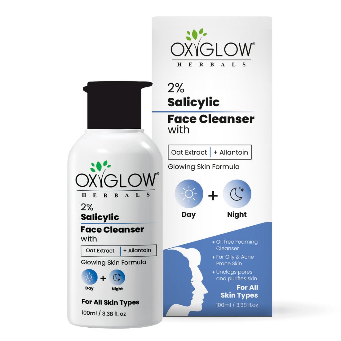 • OxvGlow Herbals 2% Salicylic Face Cleanser targets oily, acne-prone, and combination skin.